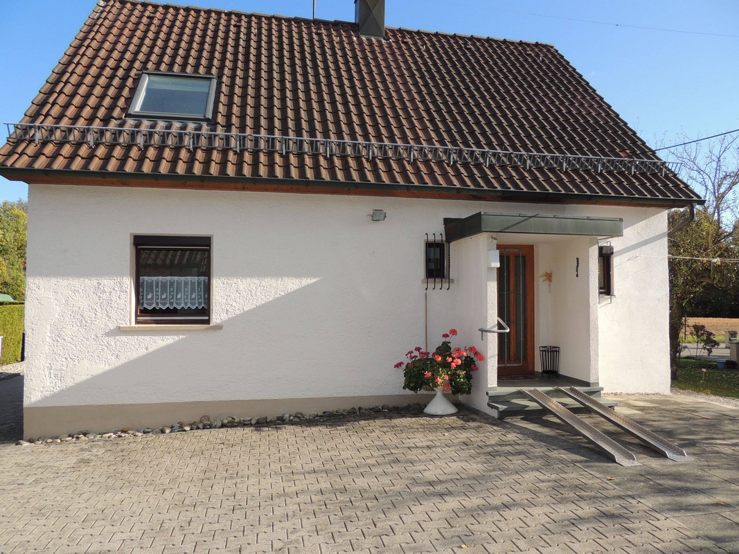 Bei Bedarf erreichen Sie das Haus bequem über eine 2 m lange Rampe. Im EG befinden sich Bad mit ebenerdiger Dusche, Waschbecken, sowie Dusch-WC mit Haltegriffen.