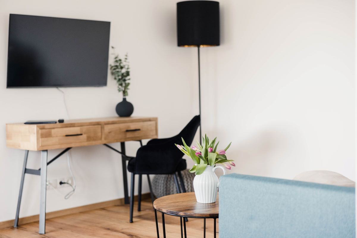 Unsere modernen und lichtdurchfluteten Ferienwohnungen vereinen hochwertigen Wohnkomfort mit einer warmen, einladenden Atmosphäre. Klare Linien, geschmackvolle Einrichtung und sorgfältig ausgewählte Materialien schaffen ein Ambiente zum Wohlfühlen und Entspannen.