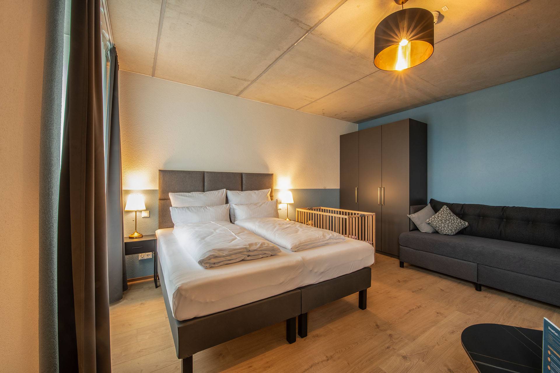 Auf 3 Stockwerken wurden insgesamt 14 1-Zimmer-Apartments, zwei 2-Zimmer-Apartments und zwei 3-Zimmer-Apartments geschaffen. Alle Unterkünfte bieten eine vollausgestattete Küche. Zwei Zimmer mit Balkon komplettieren unser Angebot.